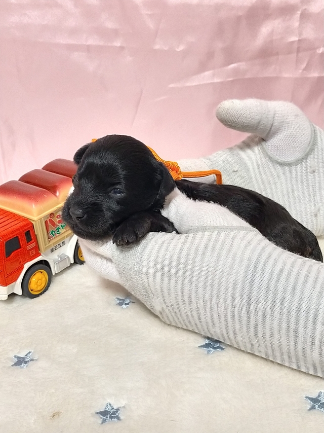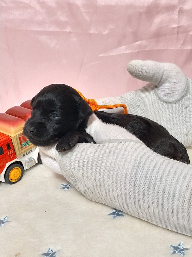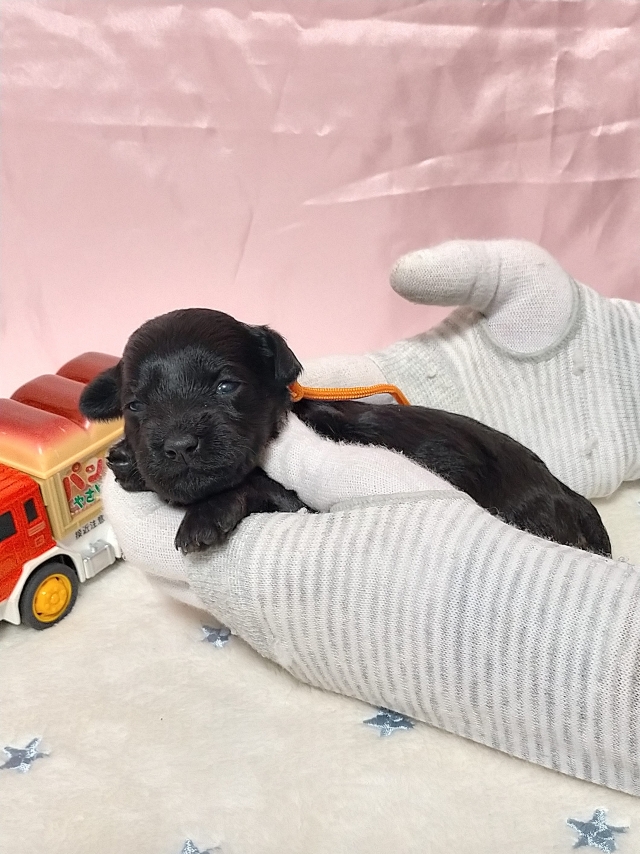 コメント | チビっちゃすぎるモモちゃん3回目の出産です! チビクロ3兄妹!オールブラックス見参! オレンジリボンの女の子!ちきっとぱんぱん離乳後はchocoZAP行き! ※9/29断尾済 母犬:モモちゃん ブラック&シルバー 体高:24cm 体重:2.9kg 父犬:別ブリーダーさん所有 ブラック&シルバー 5.5kg 遺伝子検査:DM編成性脊髄症 クリア 第Ⅶ因子欠乏症 クリア |