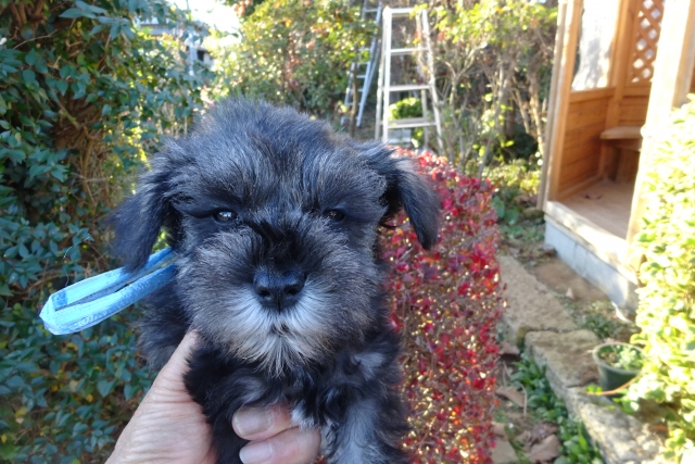 | コメント | 父親/ソルト&ペッパー3.5kg 母親/ソルト&ペッパー3.5kg 性格の穏やかな人懐こい両親ですので子犬も飼いやすい子に育ちます。 |
